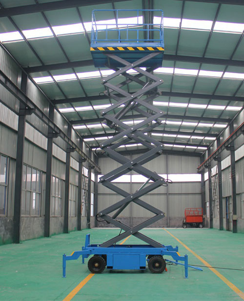 移動式升降機是用途廣泛的高空作業專用設備。它的剪叉機械結構,使升降臺起升有較高的穩定性,寬大的作業平臺和較高的承載能力,使高空作業范圍更大、并適合多人同時作業。升降動力分為220V或380V電源,柴油機,或電瓶動力源,特殊環境也可采用防爆泵站及防爆電器。升高4——22米,載重0.3—3噸。采用意大利和國產液壓泵站,臺面使用防滑絕緣扣板,具有防滑,絕緣、安全,請放心使用。它使高空作業效率更高,安全更保障。