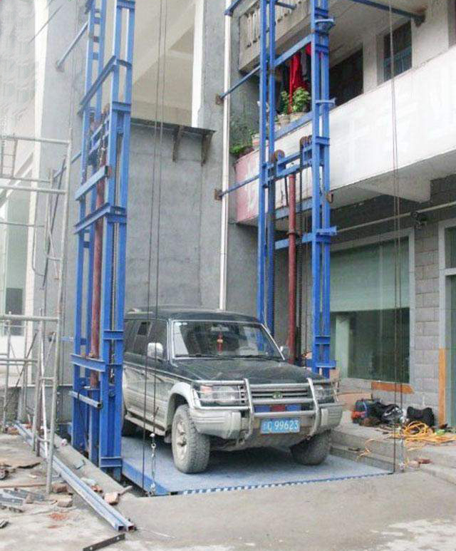 導軌鏈條式汽車升降平臺是一種大噸位汽車或貨車修理和保養單位常用的專用機械舉升設備。是根據導軌式貨梯更改而來。導軌式汽車升降平臺還是通常被當做樓層之間運送汽車的產品。隨著經濟的發展,私家車不斷增加,停車空間緊缺,在停車庫的建設中,往往會遇到因場地狹小無法采用自走式坡道的情況,為了將汽車搬運到不同平層中存取車輛,就需要采用垂直升降的汽車升降貨梯。這樣汽車升降平臺就可以替代汽車進出車庫的斜坡道,大大節省了停車使用空間,提高車庫的利用率。這種汽車升降貨梯常用于地下或屋頂及建筑自走式車庫存取汽車的搬運。該升降平臺具有無需深挖地坑、安裝環境要求少、維護簡單等特點。