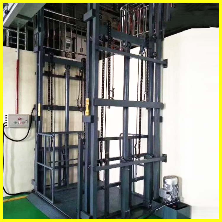廠房液壓貨梯是用于貨物升降的液壓升降機械設備,釆用液壓站作為主要動力,液壓油缸作為支撐,T型導軌作為軌道,通過特種鏈條和滾輪傳動,保證轎箱運行安全穩定。